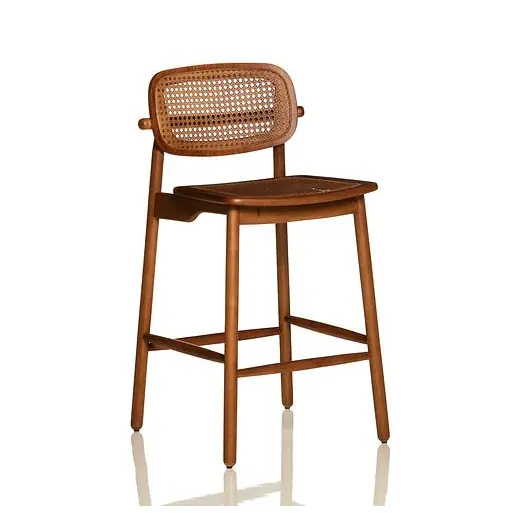 כיסא בר מעץ אלון ברזילאי מושב מרופד גב רטאן