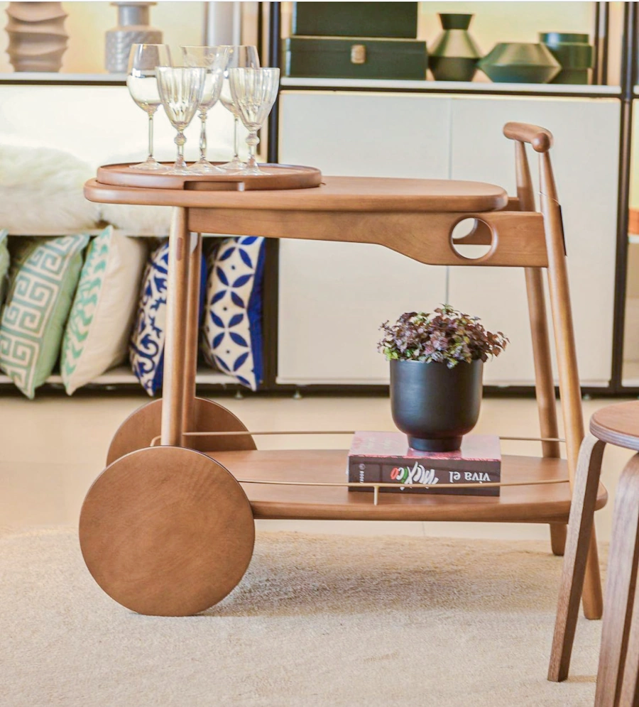 עגלת בר מעוצבת מעץ אלון ברזילאי